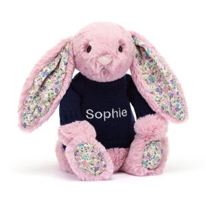 Blossom Tulip Bunny with Personalised Navy Jumper