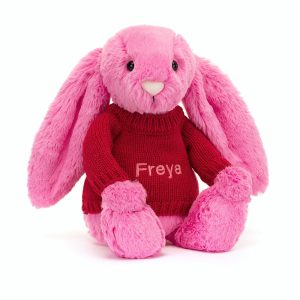 Bashful Hot Pink Bunny with Personalised Red Jumper